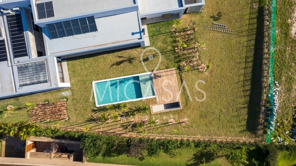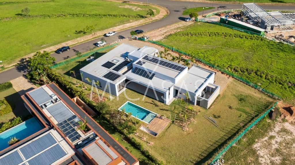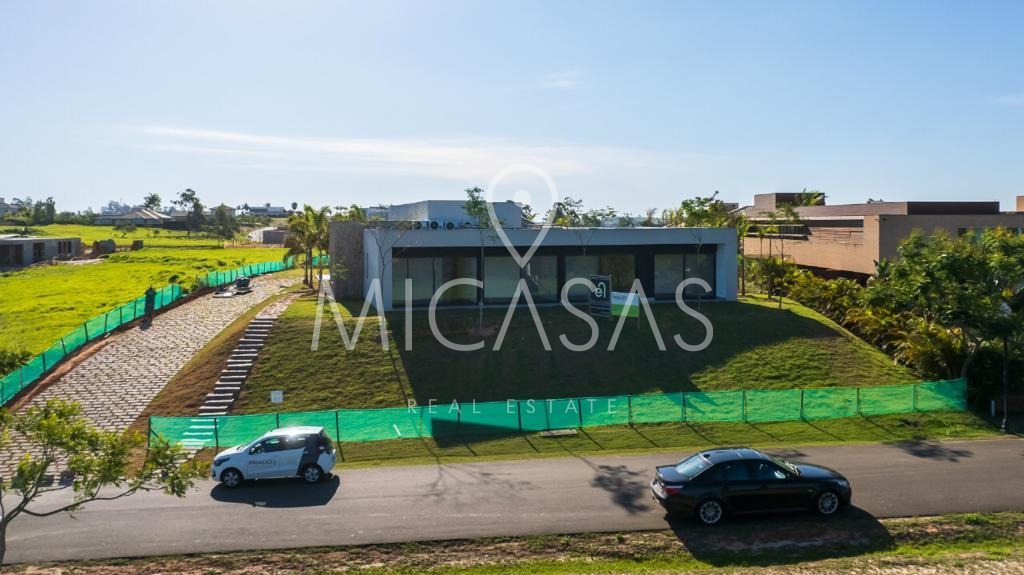 Uma casa térrea com 5 suítes, sendo uma master com closet, foi projetada em um conceito aberto, valorizando a entrada de luz natural com seu incrível pé direito de 4 metros, o que permite um aproveitamento total de sua vista privilegiada.