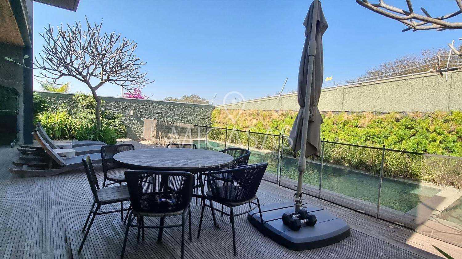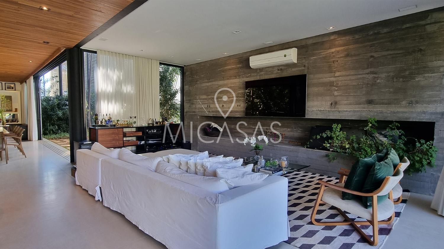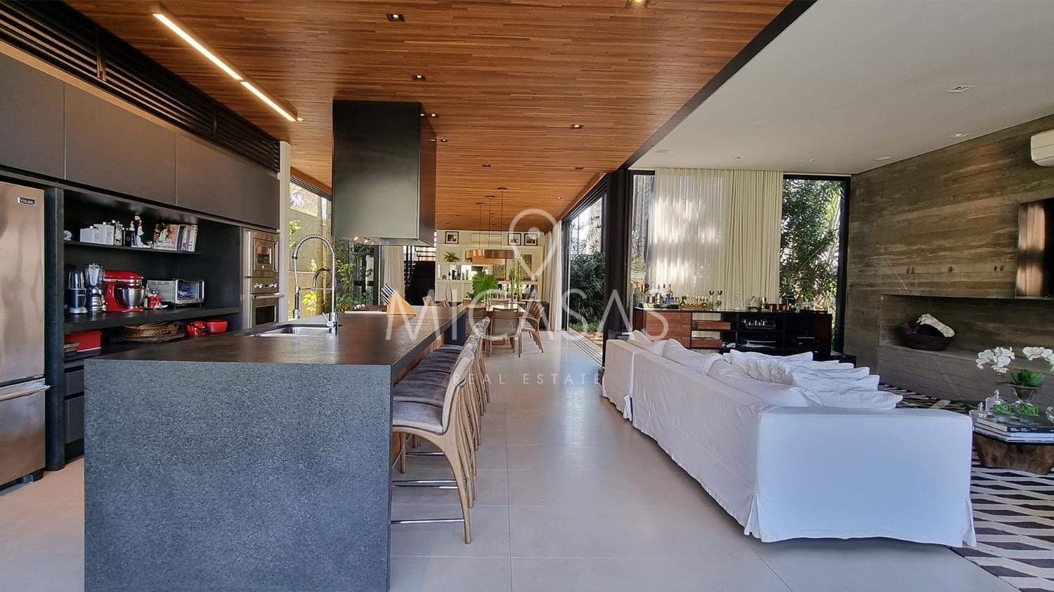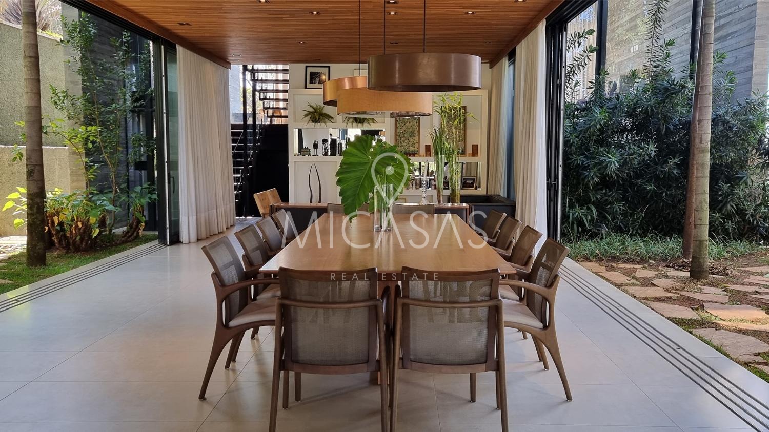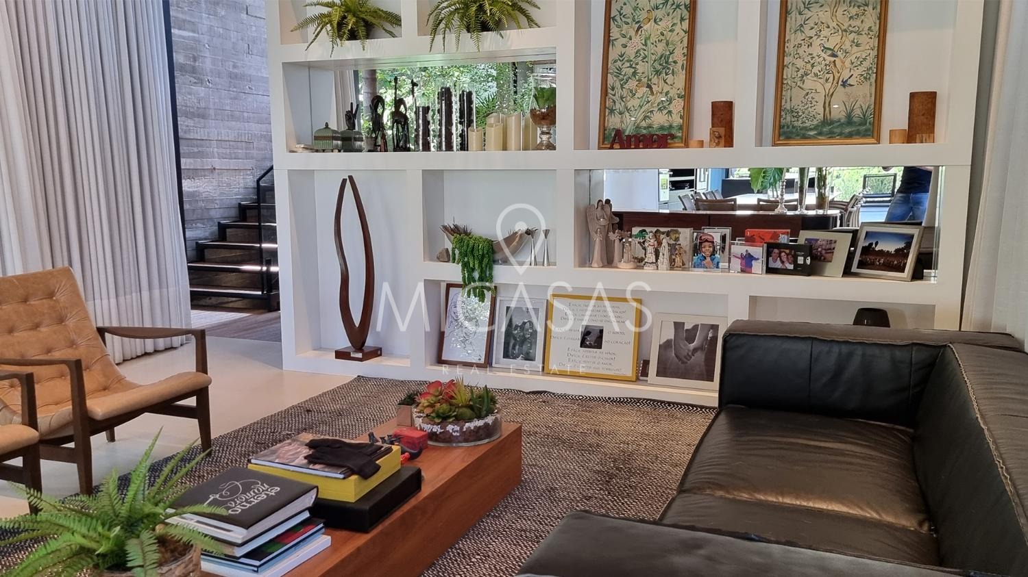 A casa traz o equilíbrio perfeito entre modernidade e natureza, pois em sua estrutura utiliza de elementos como aço e concreto maciço, tudo em perfeita harmonia com os forros e pisos de madeira e o paisagismo de Daniel Nunes.